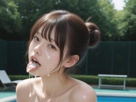 静謐なプールの青と、そこに広がる異質な白濁が交じり合う、背徳的な予感に満ちたシチュエーションです。澄み切った水面がその色を失っていく様は、守られるべき秩序が崩れ、秘められた欲望が露わになっていく過程を象徴的に描き出します… -
