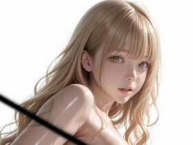 その肉体は、全てを脱ぎ捨てて完成する金色の聖域の崩壊。それは金髪の少女が一糸まとわぬ姿となり、豊満な肉体という秘密の聖域を露わにする情景です。聖なる黄金の輝きが、豊満な肉体の生々しい現実によって官能的に崩壊します。豊満な… -